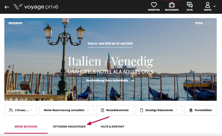 | Wichtig: Wenn der Button „Optionen hinzufügen“ nicht sichtbar ist, bedeutet dies, dass für Ihre gewählte Reise keine zusätzlichen Leistungen mehr angeboten werden. In diesem Fall empfehlen wir, den Mietwagen direkt bei einem Anbieter Ihrer Wahl separat zu buchen.